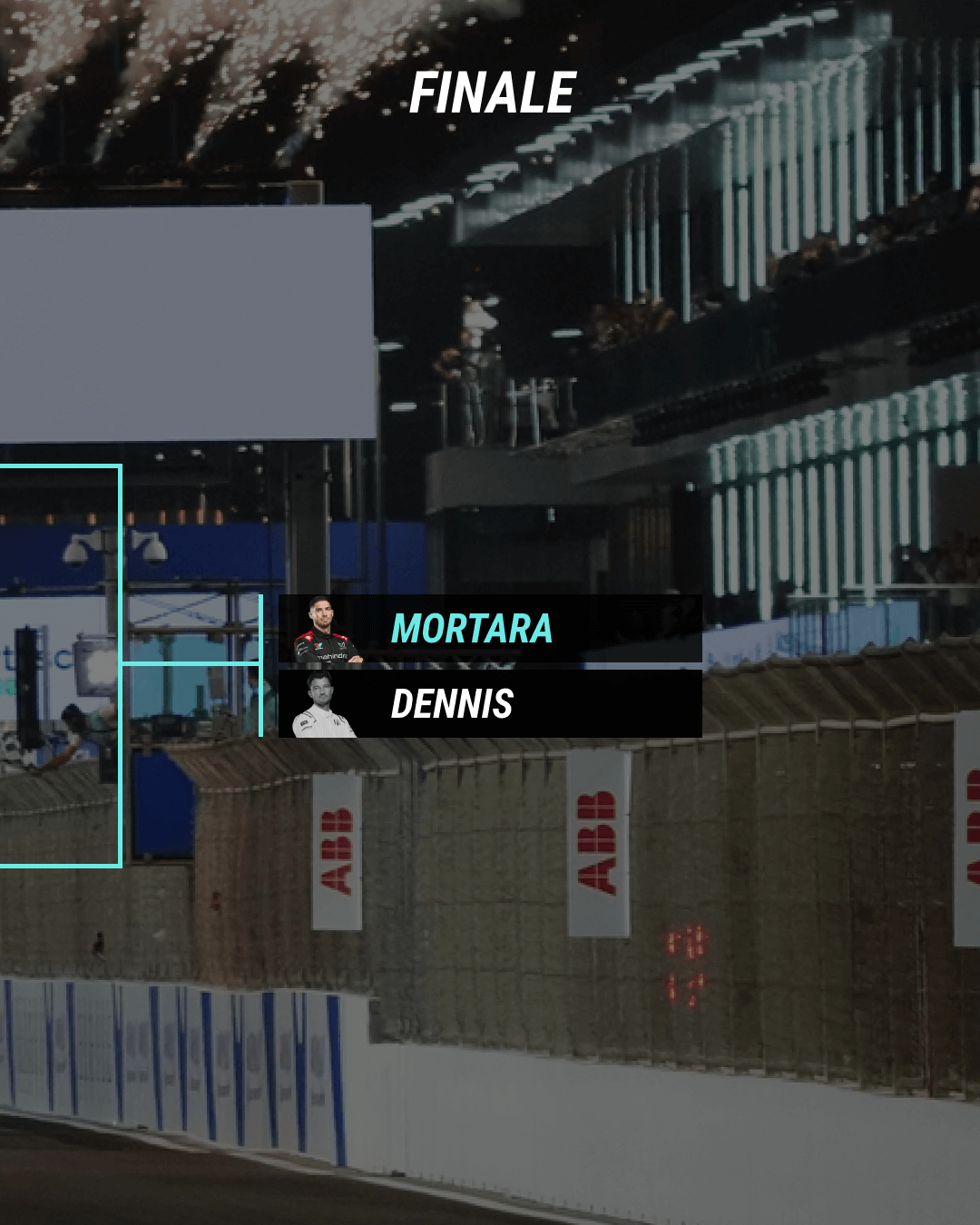 Der Mahindra Fahrer Mortara und Andretti-Fahrer Dennis hätten sich kaum einen ängeren Zweikampf bieten können: Der Fahrer der gestern bereits von der Spitzenposition gestartet ist konnte sich dominant durchsetzen, wenn auch Dennis ihm extrem nah auf den Fersen war und Dennis Mortara am Ende nur 0.037 Sekunden unterlag. Mit dem Sieg des Final-Duells sichert sich die zweite Pole-Position des Jeddah Wochenendes. Auch wenn Mortara seinem Team mitteilte, dass er in Kurve 11 und 16 schon dachte, dass er mit dem Auto in der Wand landen würde, so am Limit ist er über die Strecke gefahren.