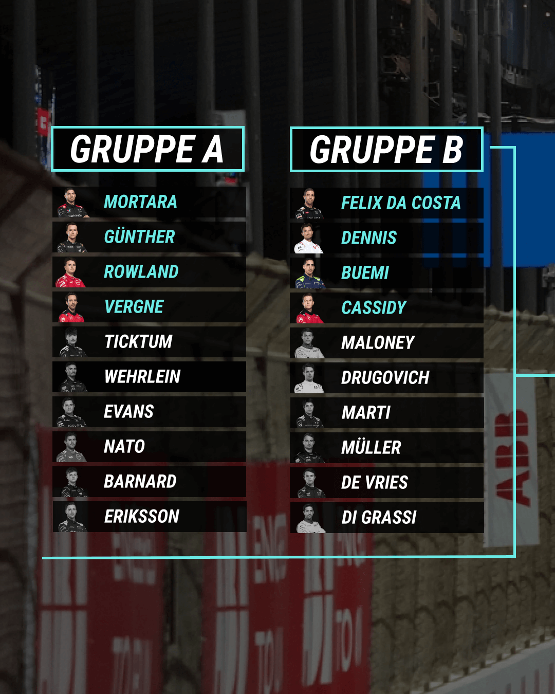 In Gruppe B befanden sich Nick Cassidy, Nico Müller, Jake Dennis, Sebastien Buemi, Antonio Felix da Costa, Nyck de Vries, Pepe Marti, Zane Maloney, Felipe Drugovich und Lucas di Grassi.
