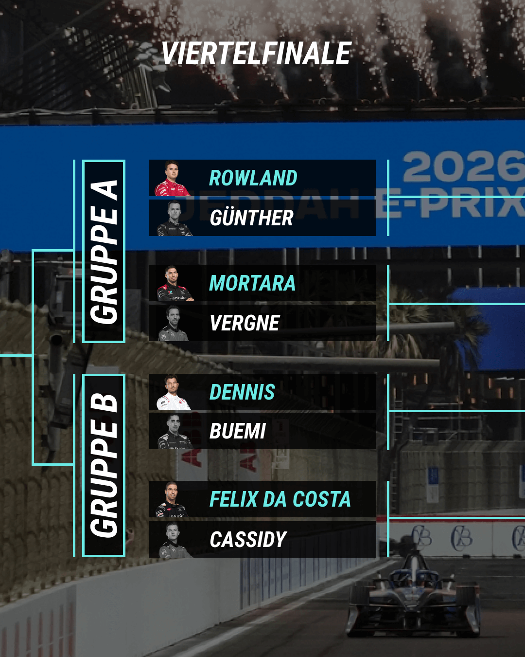 Somit sind Mortara, Günther, Rowland und Vergne im Viertelfinale. Für Ticktum, Wehrlein, Evans, Nato, Barnard und Eriksson ist das Qualifying an dieser Stelle bereits beendet.