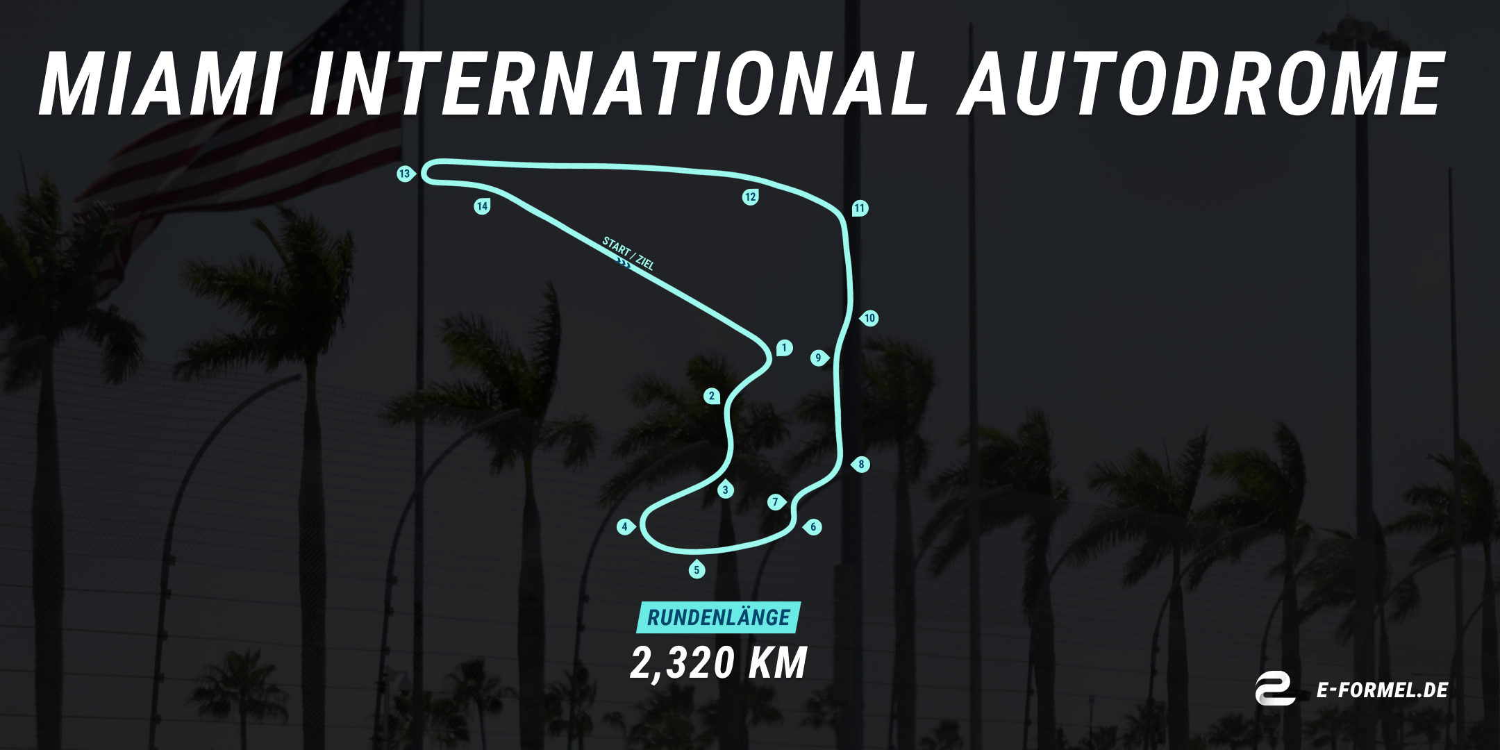 Die Streckenlänge beträgt 2,23 km, es gibt 14 Kurven. Teile des Kurses sind auch vom Miami Grand Prix der Formel-1-Weltmeisterschaft bekannt.